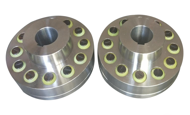 是利用若干非金屬?gòu)椥圆牧现瞥傻闹N(xiāo),置于兩半聯(lián)軸器凸緣孔中,通過(guò)柱銷(xiāo)實(shí)現(xiàn)兩半聯(lián)軸器聯(lián)接,該聯(lián)軸器結(jié)構(gòu)簡(jiǎn)單,容易制造,裝拆 換彈性元件比較方便,不用移動(dòng)兩聯(lián)軸器。